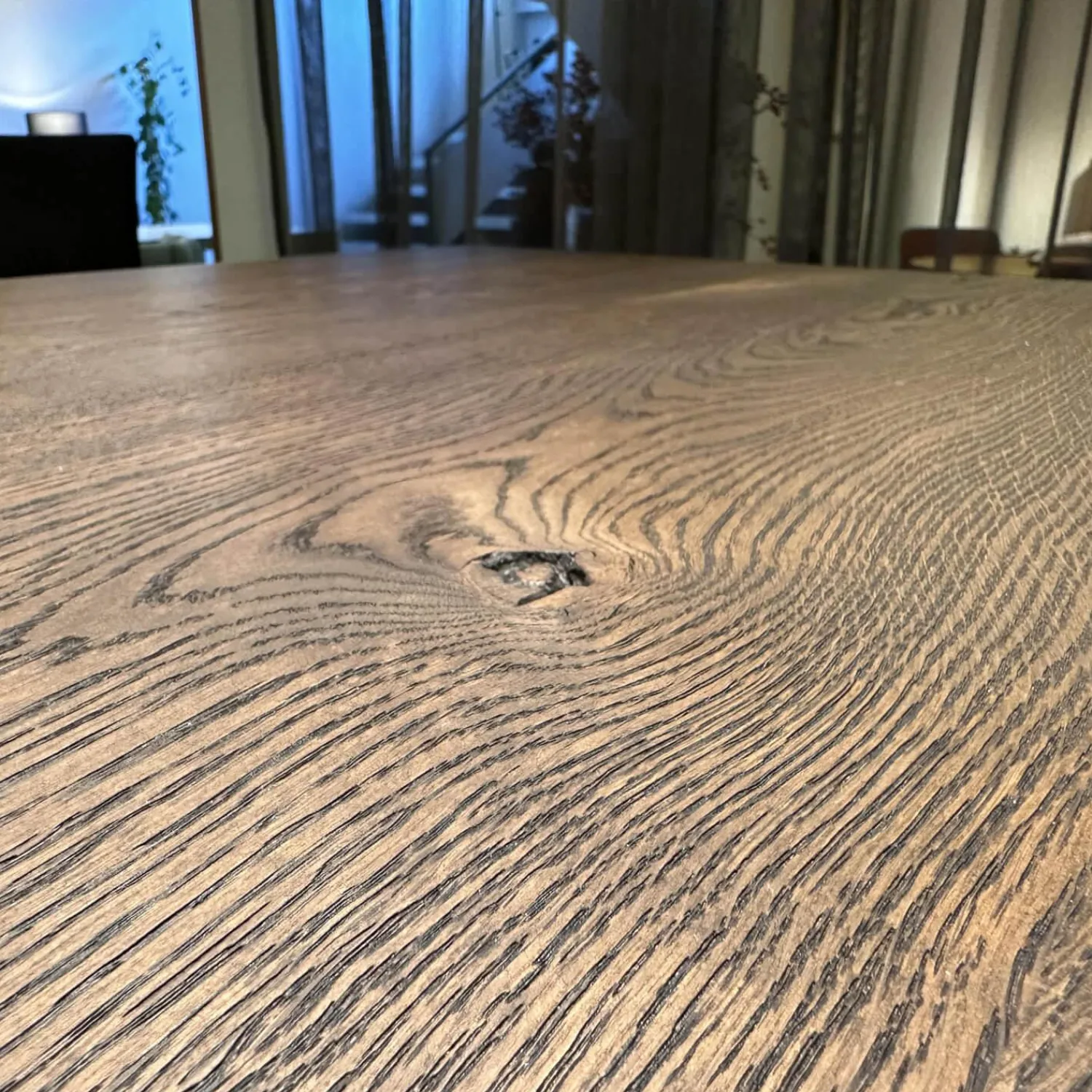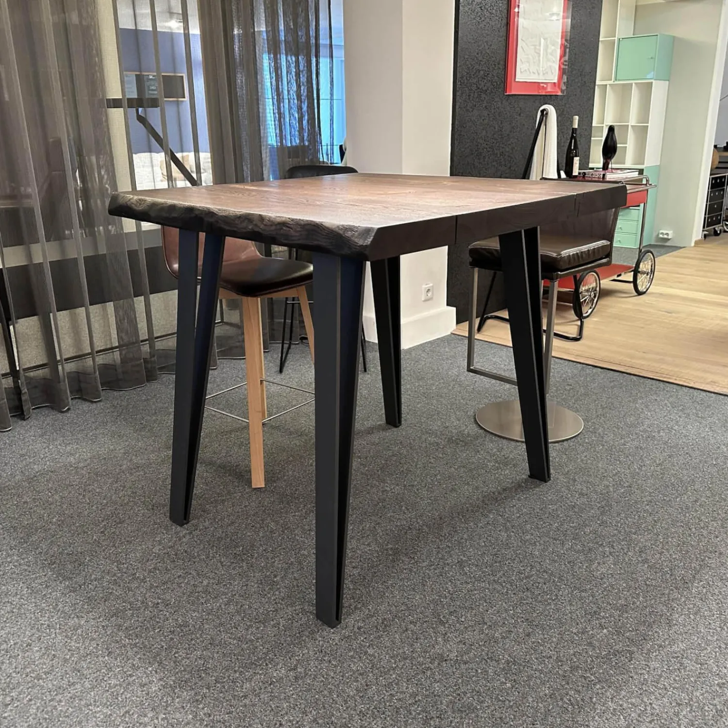ASCO Esstische|Tisch Nightingale Räuchereiche Massiv Gebürstet Schwarz Braun Geölt Mit Baumkante Flachstahlgestell