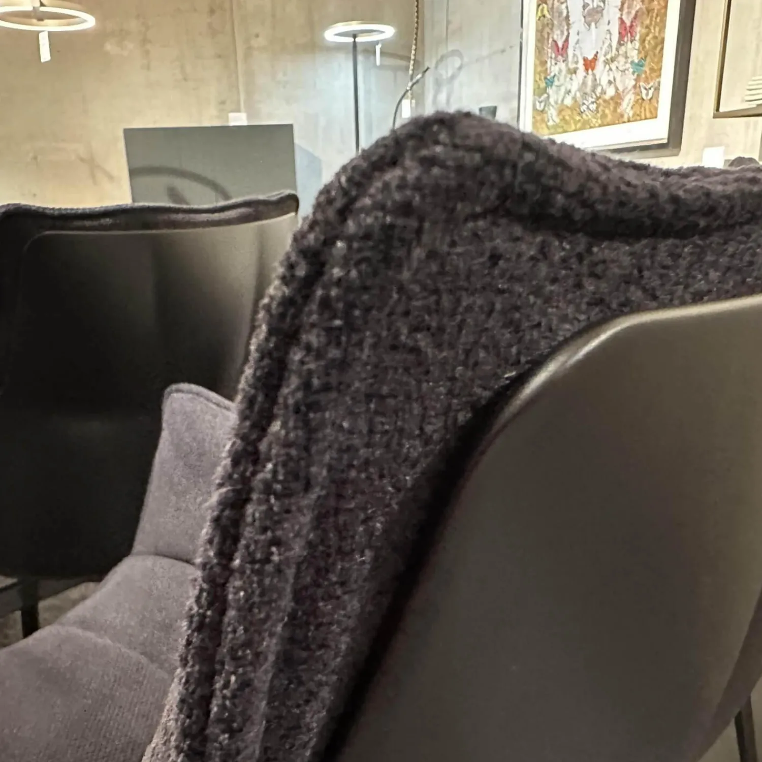 B&B Italia Stuhlsets|4-er Set Stuhl Husk Stoff Serle Grau Blau Schale Polyurethanharz Anthrazit Gestell Schwarz Verchromt Lackiert