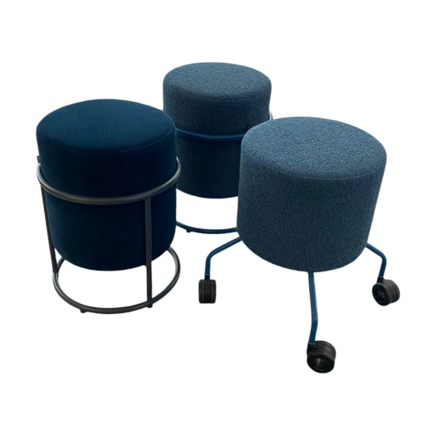 COR Hocker & Sitzsäcke|3er Set Hocker Drop Stoff 8214 Petrol Blau Und 8170 Ozean Dunkelblau Fuß Rollen Und Filzgleiter