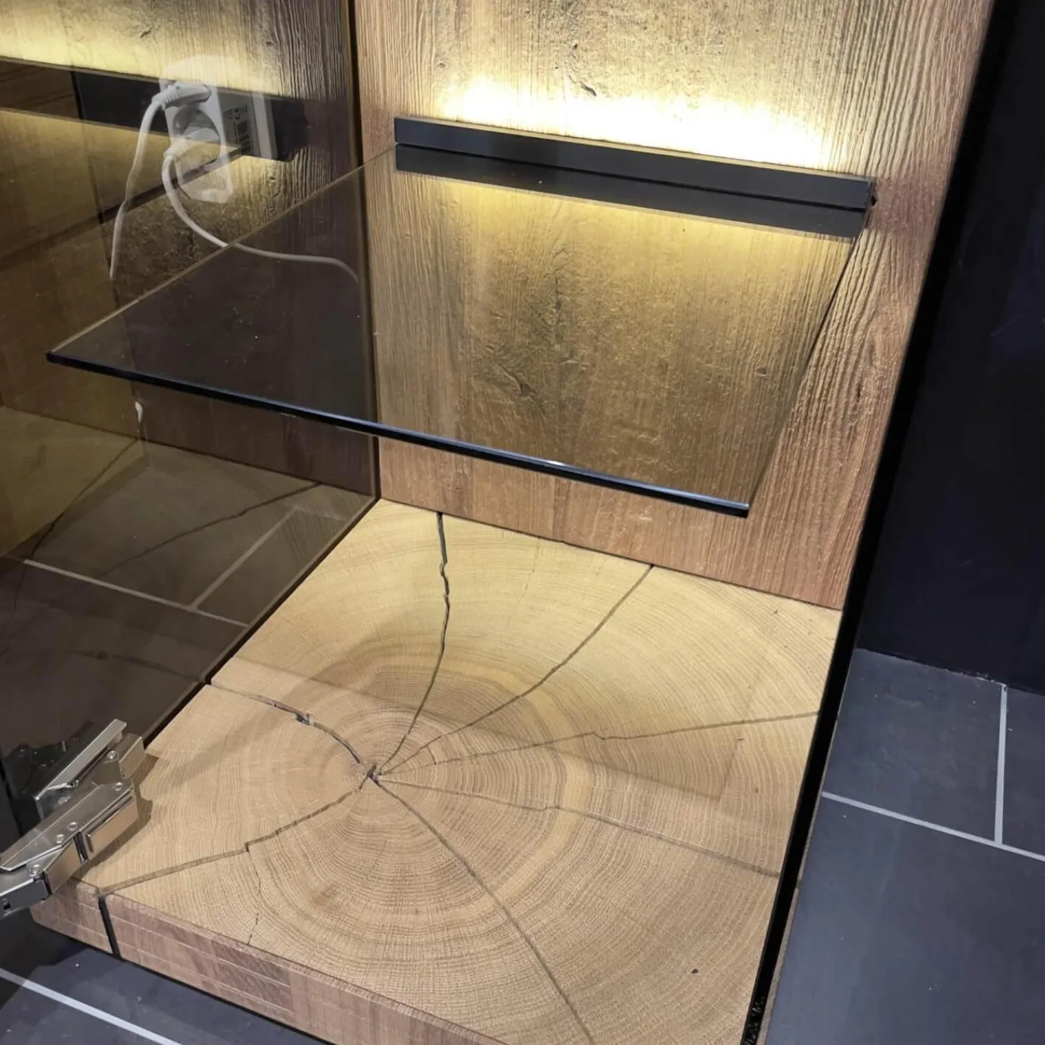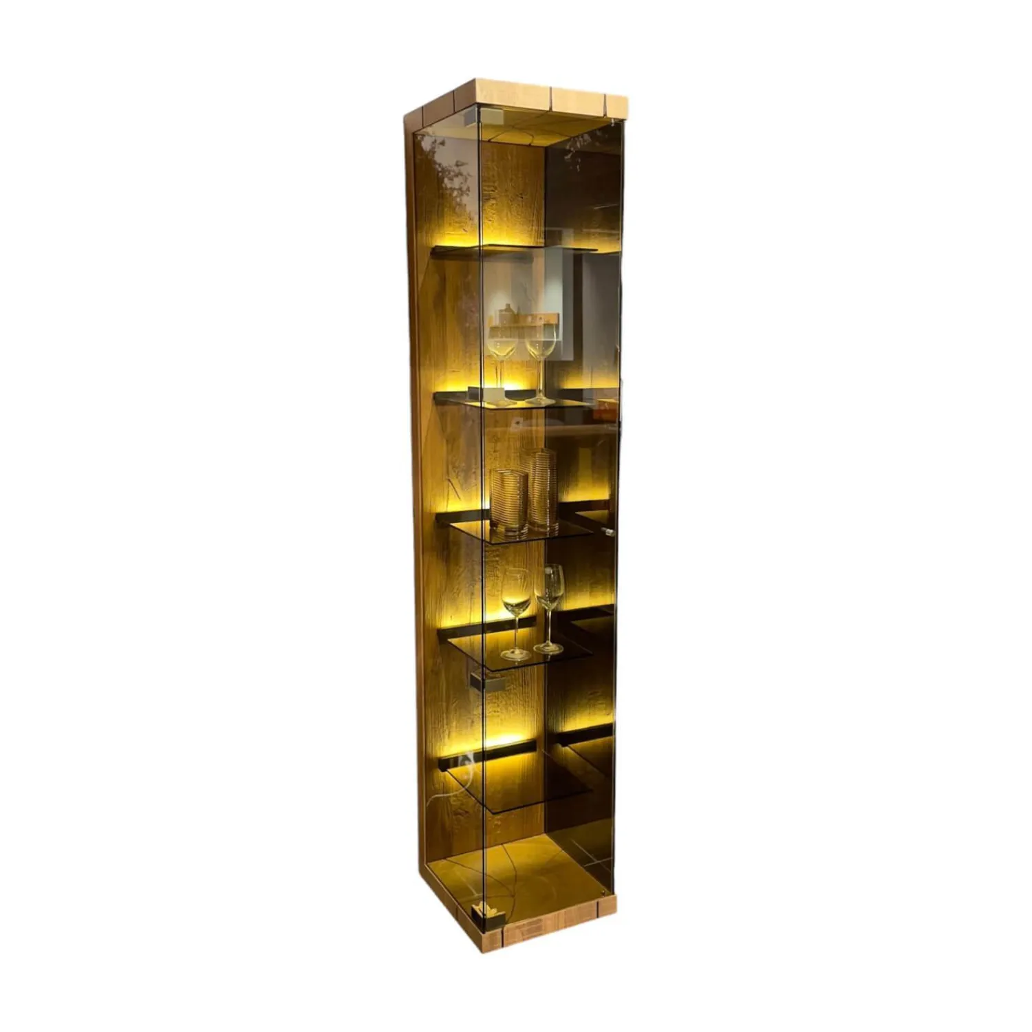 Hartmann Vitrinen & Highboards|Standvitrine Benjo Rechts Kerneiche Umato Sägerau Gebürstet Mit Beleuchtung Ohne Dekoration