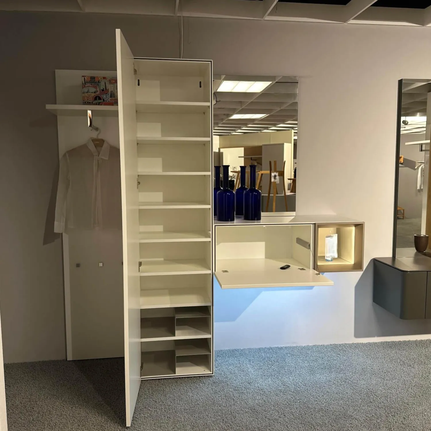 Tiefe: Garderobenpaneel: 35 Element mit Tür: 45 Element mit Klappe: 45 Spiegel: 3.8 cm
