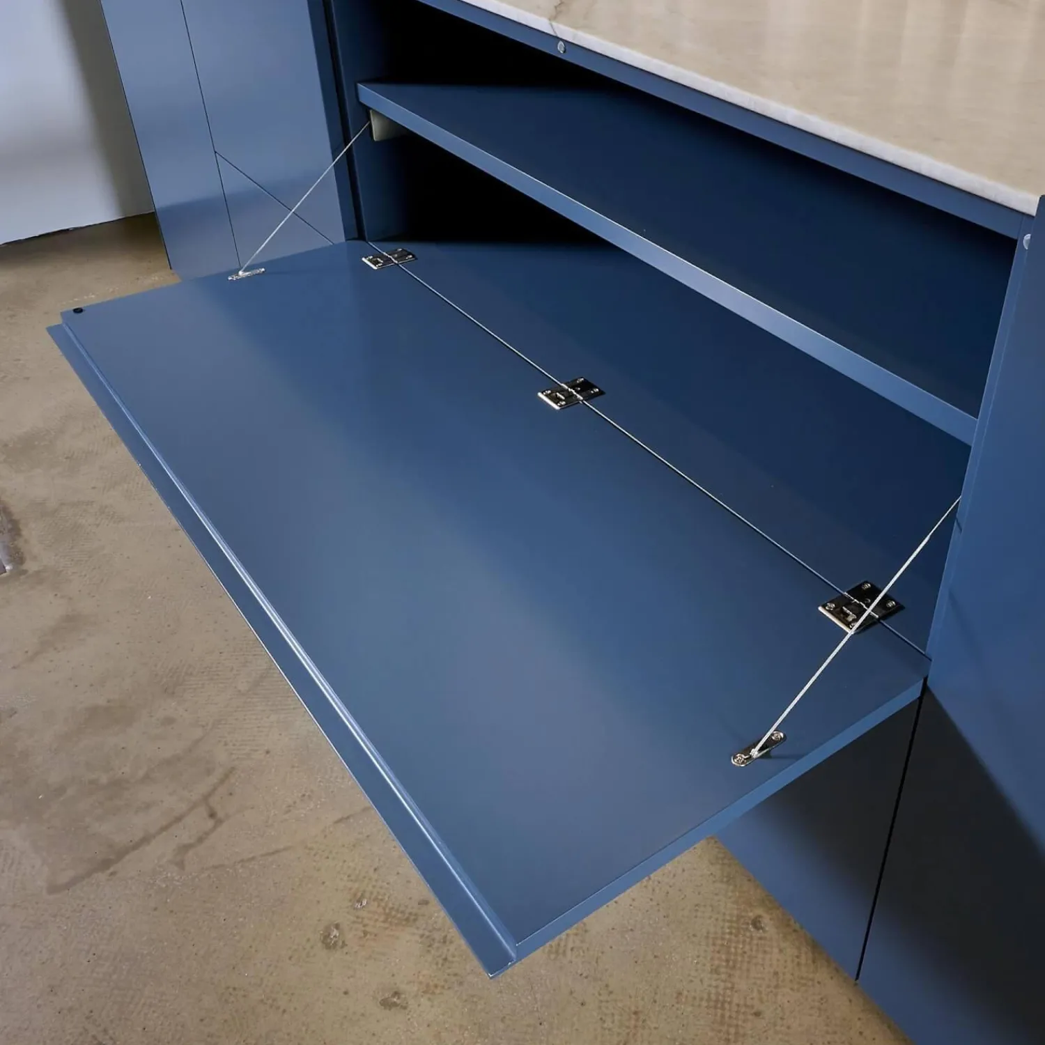Interlübke Kommoden & Sideboards|Sideboard Cube Light Lack Atlantik mit Abdeckplatte Quarzit Taj Mahal und Hintergrundbeleuchtung