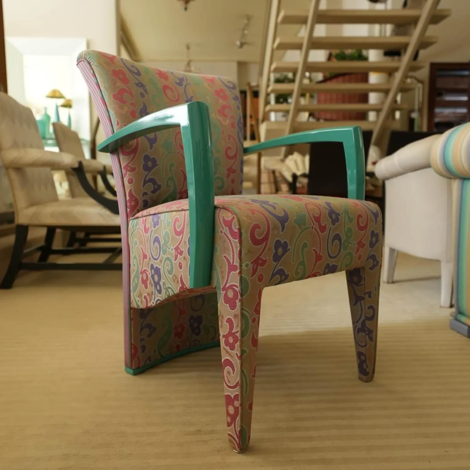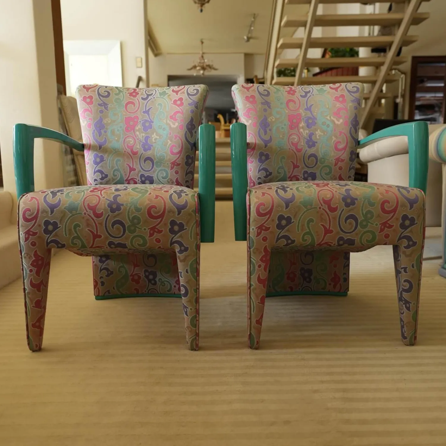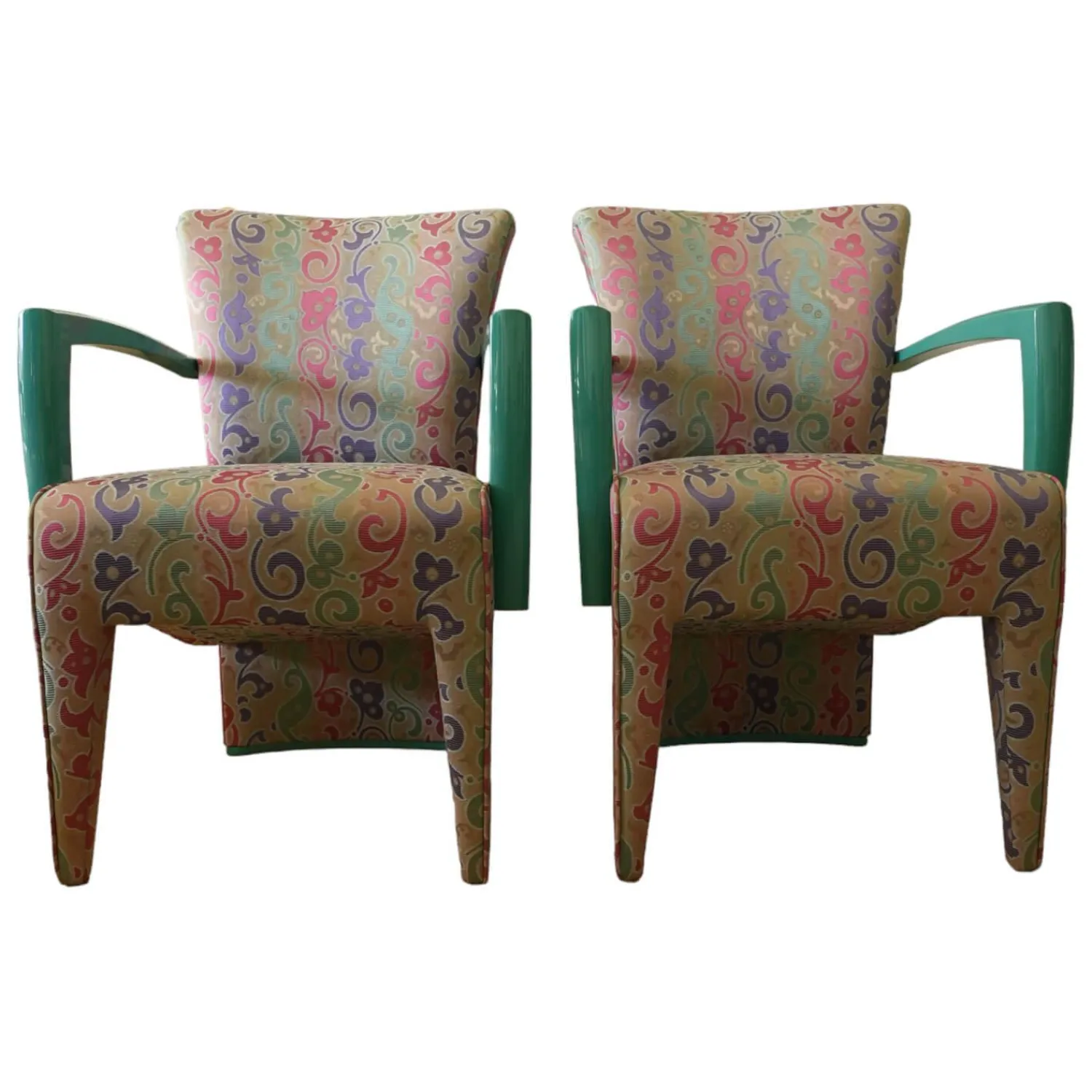 Luxus Stuhlsets|2er-Set Armlehnstuhl Extra Stoff Mehrfarbig Lack Hochglanz Grün