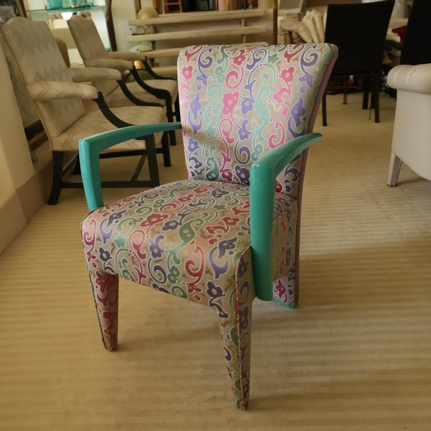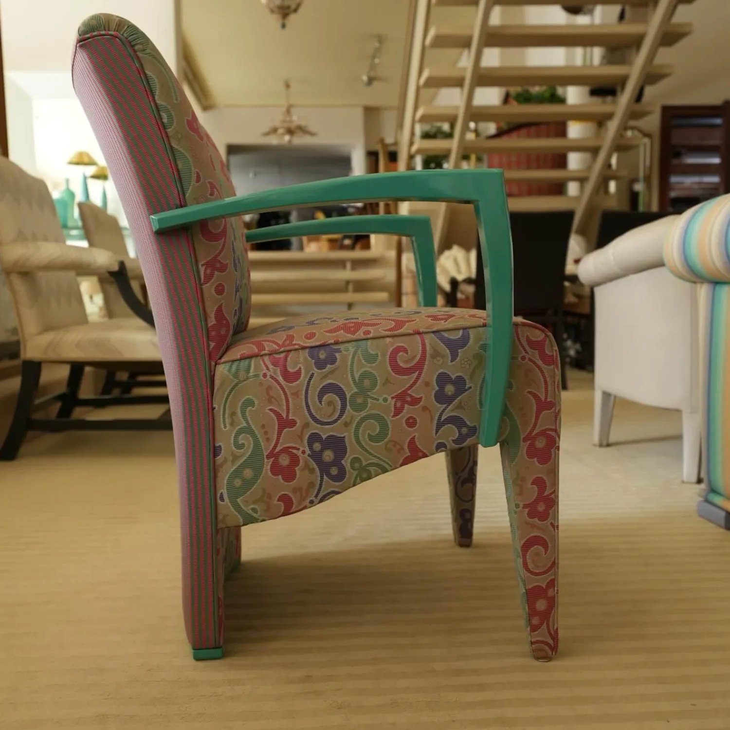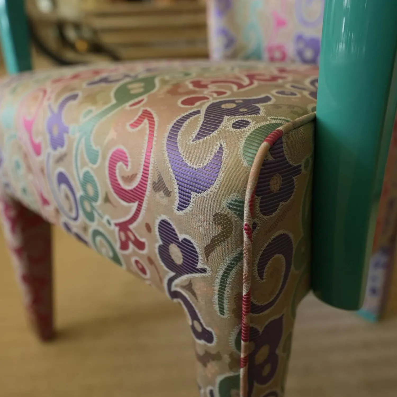 Luxus Stuhlsets|2er-Set Armlehnstuhl Extra Stoff Mehrfarbig Lack Hochglanz Grün
