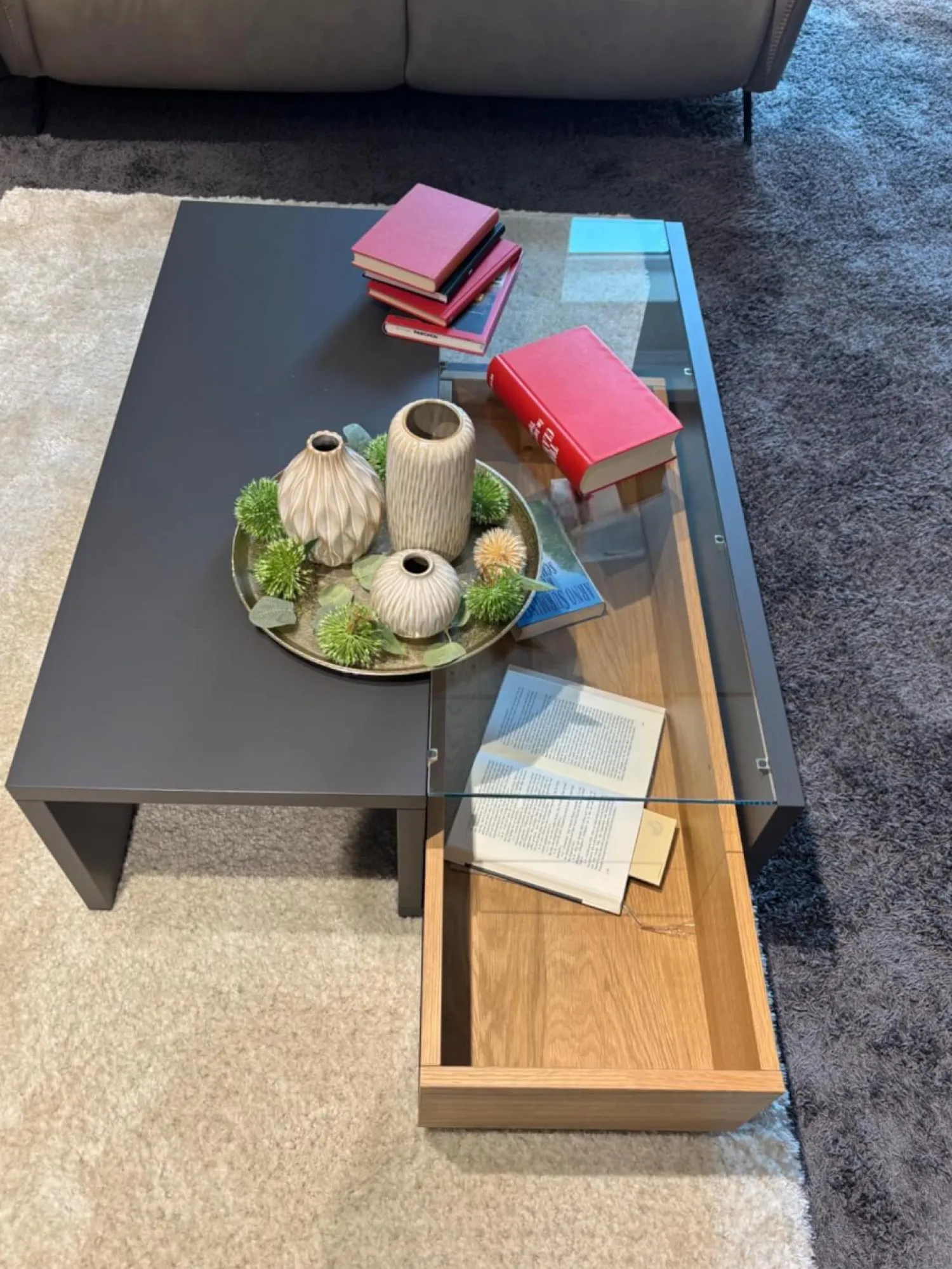 Musterring Couchtische|Couchtisch Aterno Gestell Schiefergrau Mit Klarglasabdeckplatte Inklusive Schubkasteneinsatz