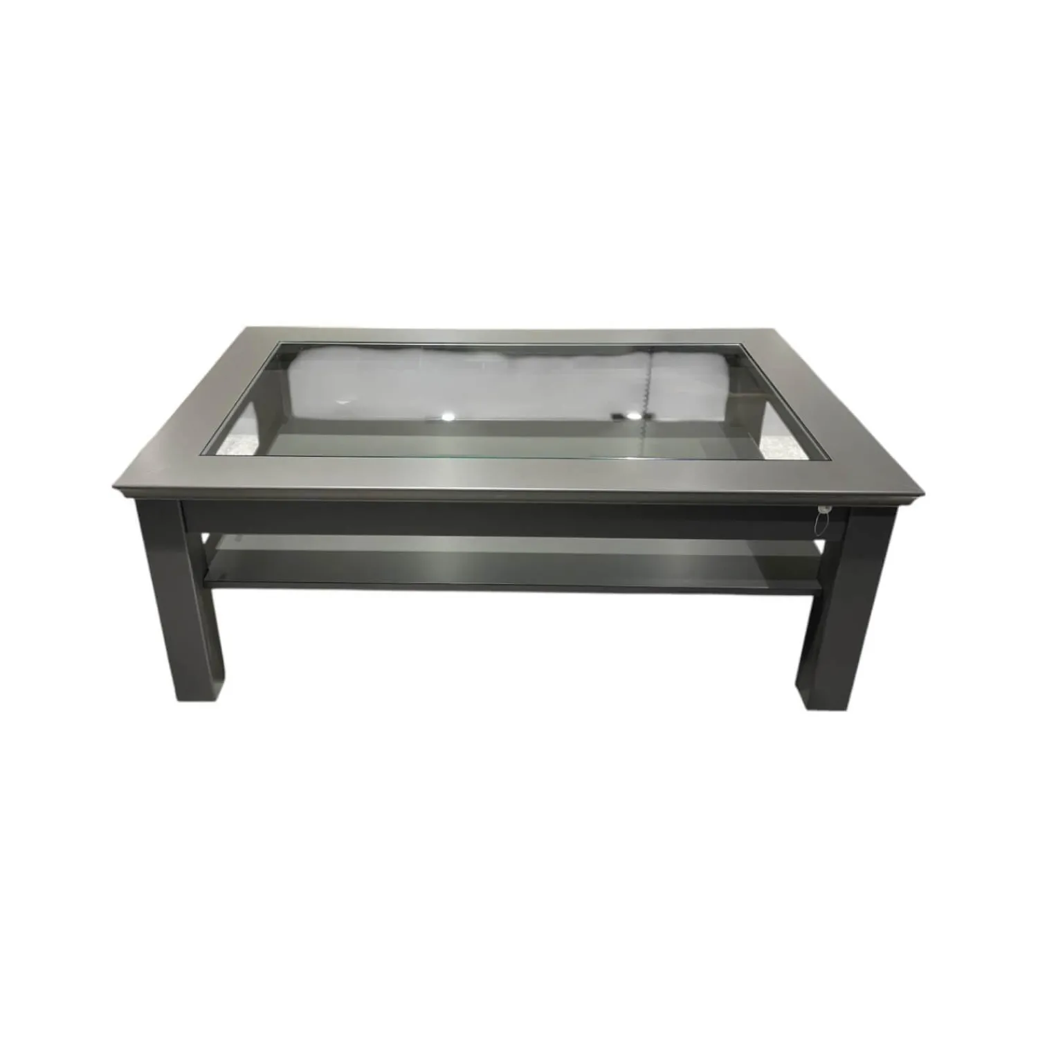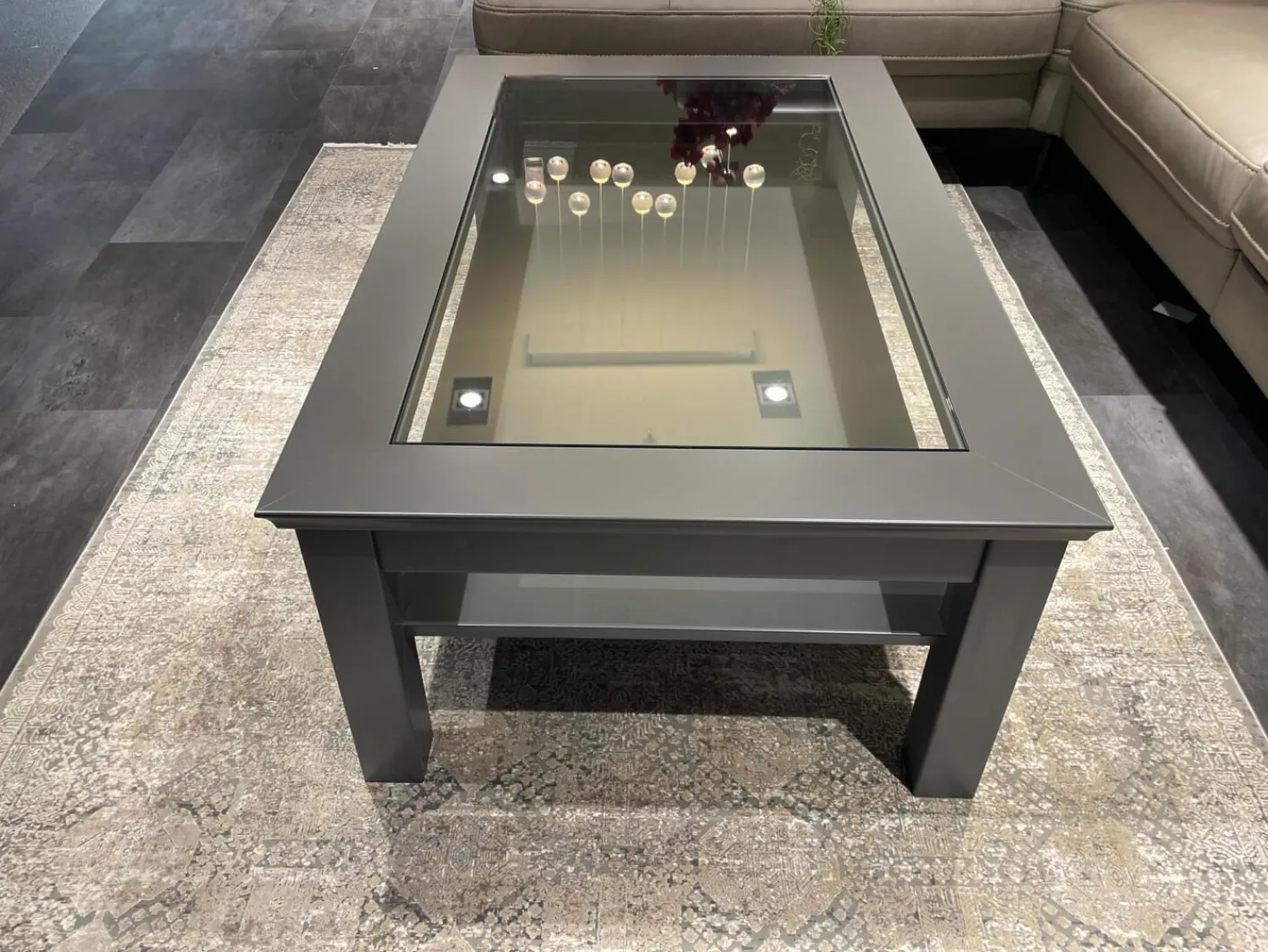Musterring Couchtische|Couchtisch Korsika 8222 Platte Klarglas Gestell Lack Schiefergrau PG 2 Grau Füße Mit Rollen