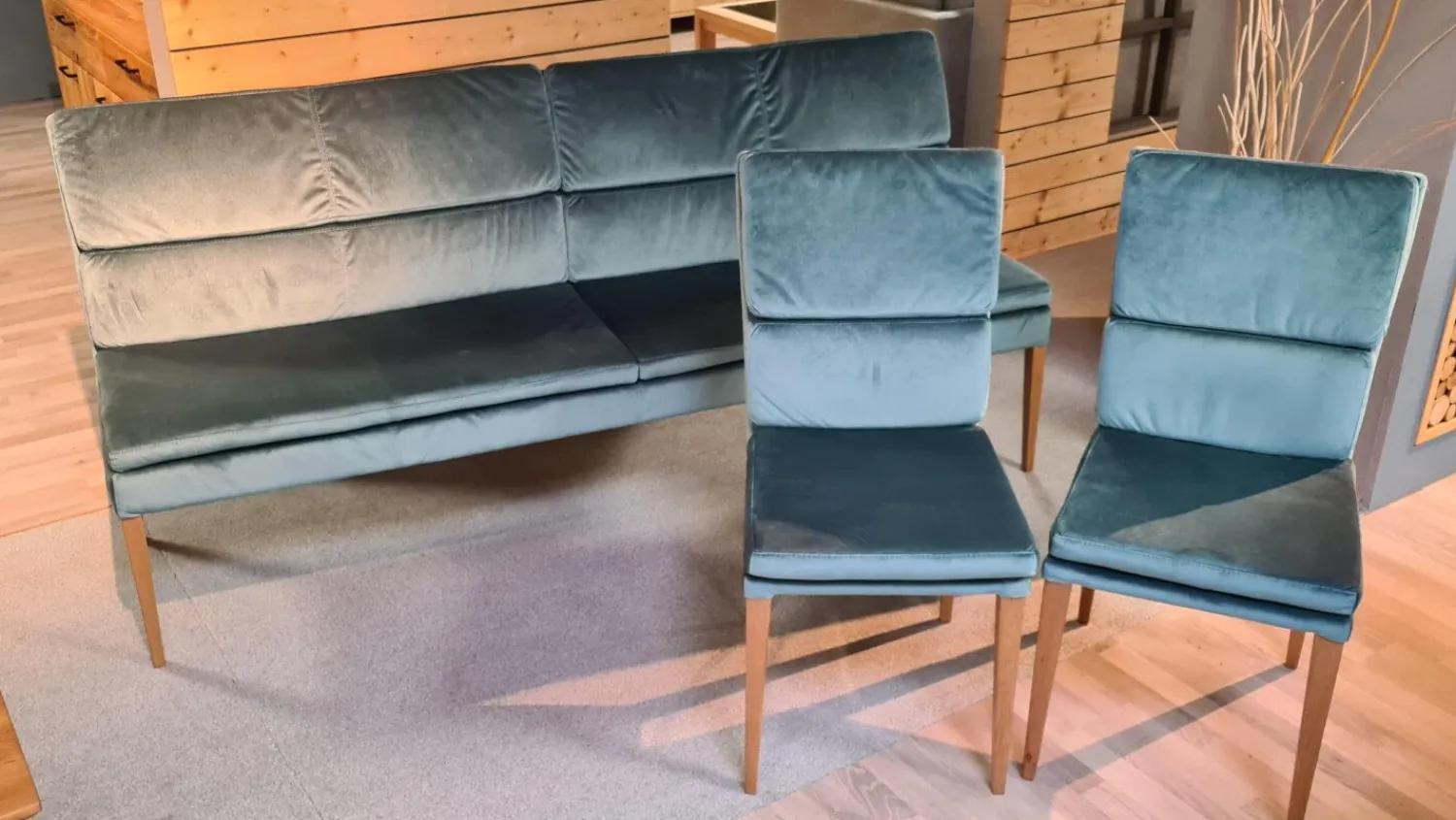 Tiefe: 61 (Stühle), 66 (Bank) cm