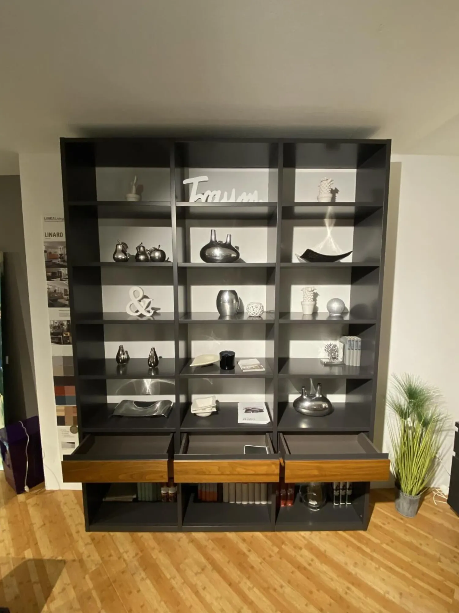 Rietberger Möbelwerke Regale|Regalwand Linaro 3163 Lackgraphit Nussbaum Nova