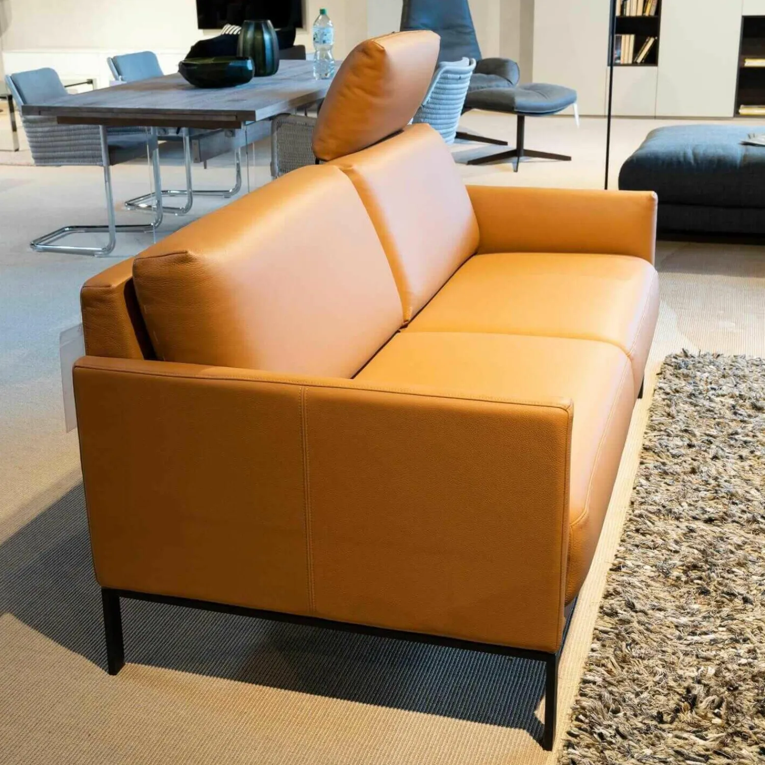 Rolf Benz 2-Sitzer-Sofas|Sofa Cara Mit Kopfstütze Leder 38.111 Ockerbraun Spangenfuß Stahl Schwarz