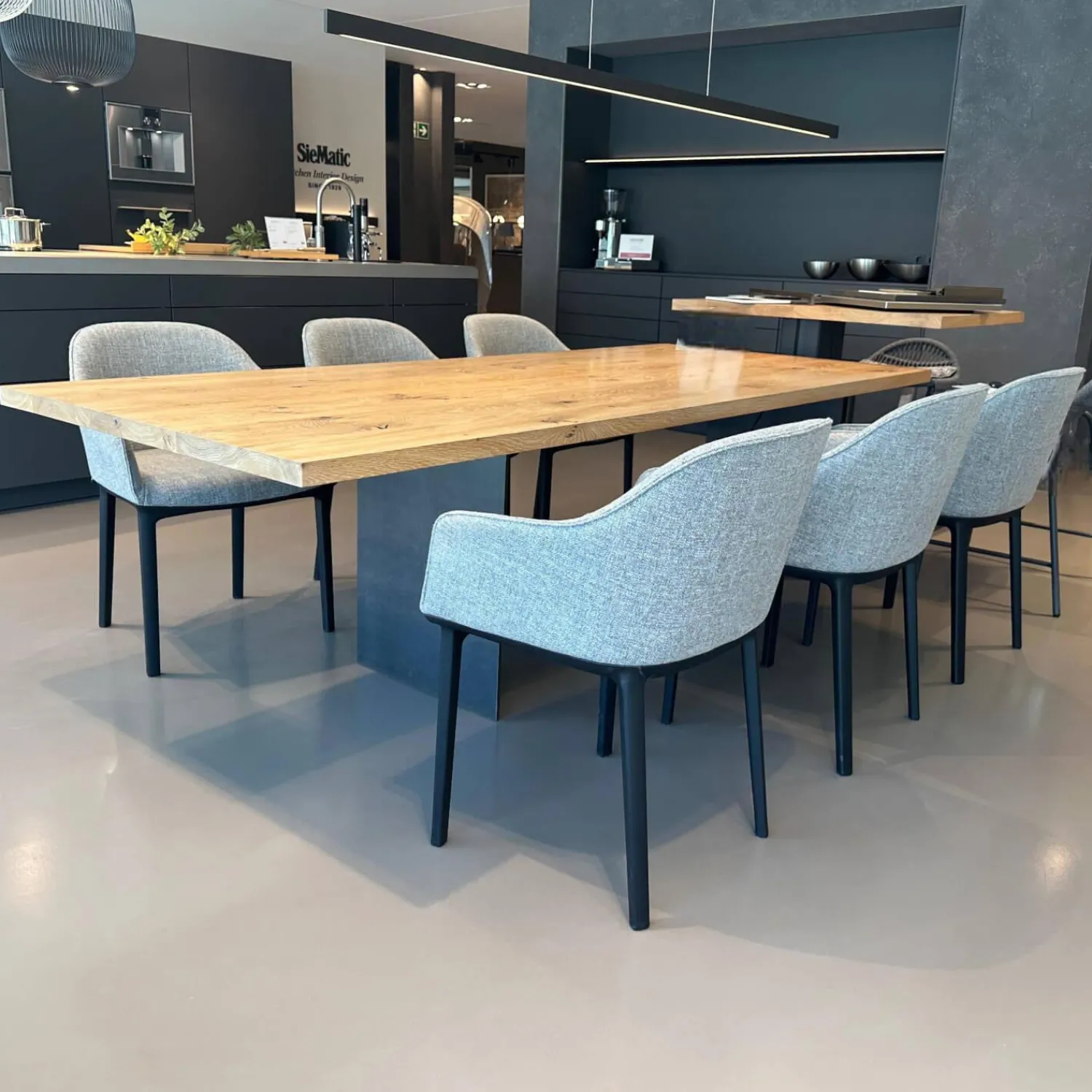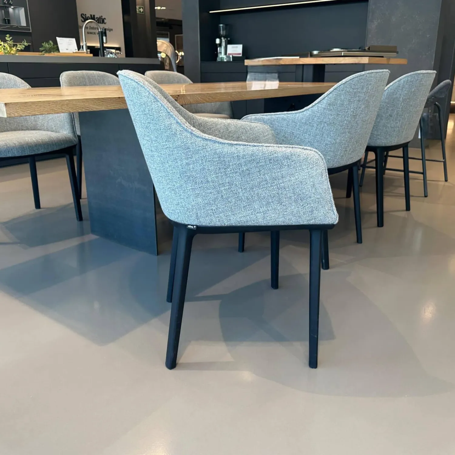 Vitra Stuhlsets|6er-Set Armlehnstuhl Softshell Stoff Savana 06 Siragrey Melange Grau Gestell Basic Dark Schwarz