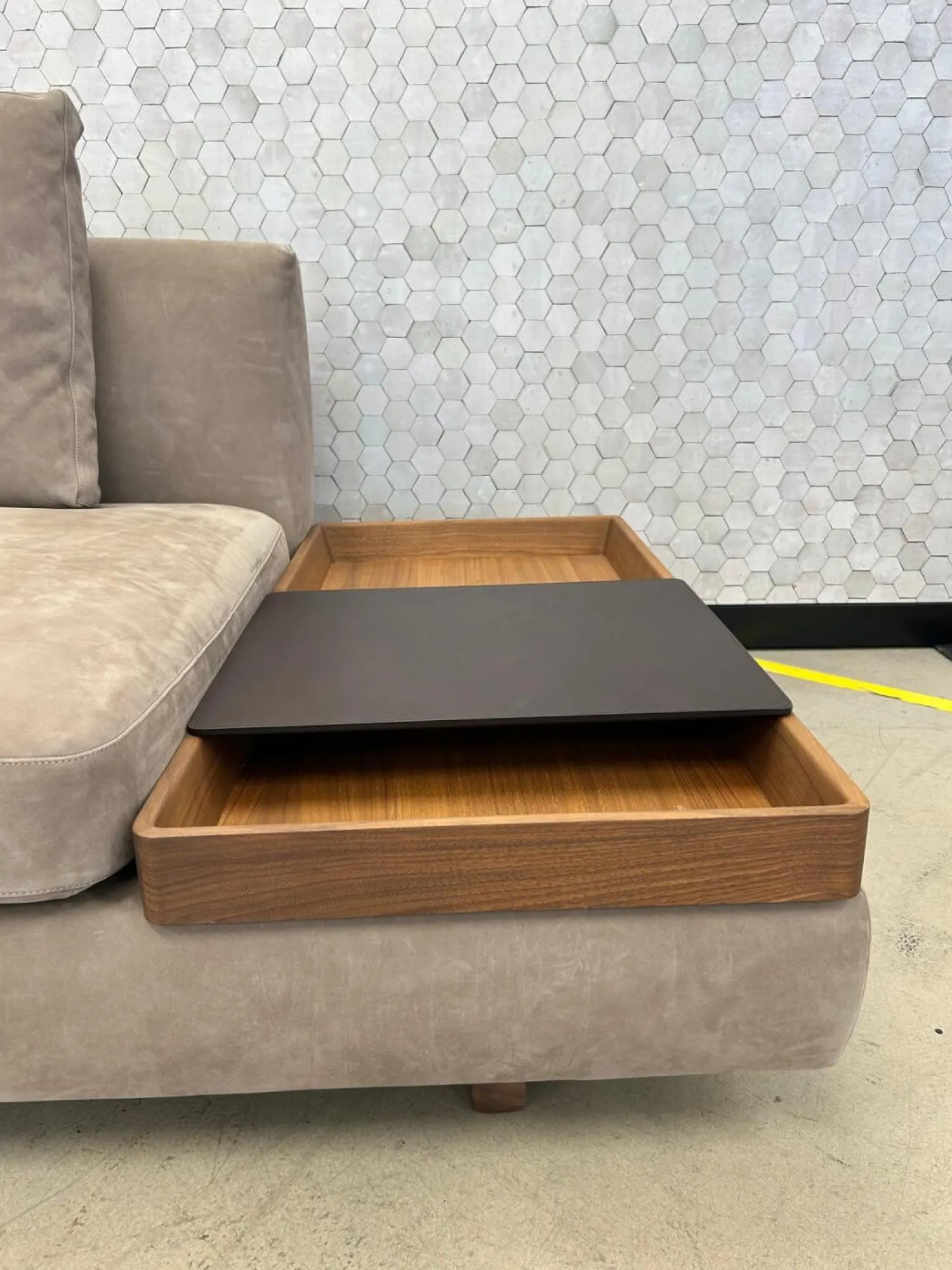 Walter Knoll Daybeds & Recamieren|2-Sitzer-Sofas|Sofa Tama Living 821 Leder Velvet 1484 Hazelnut Braun Gestell Nussbaum Mit Splint Geölt Mit Kissen Und Tablett