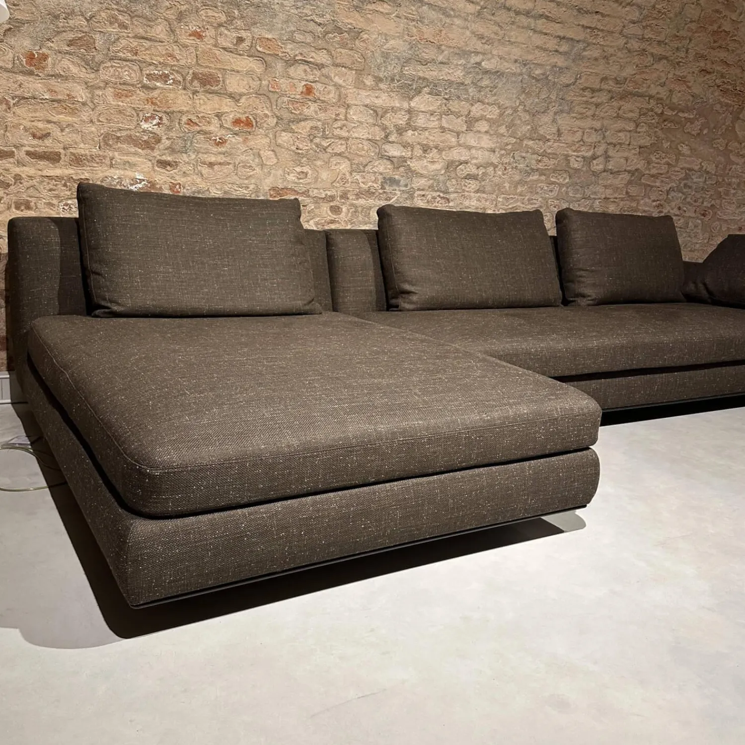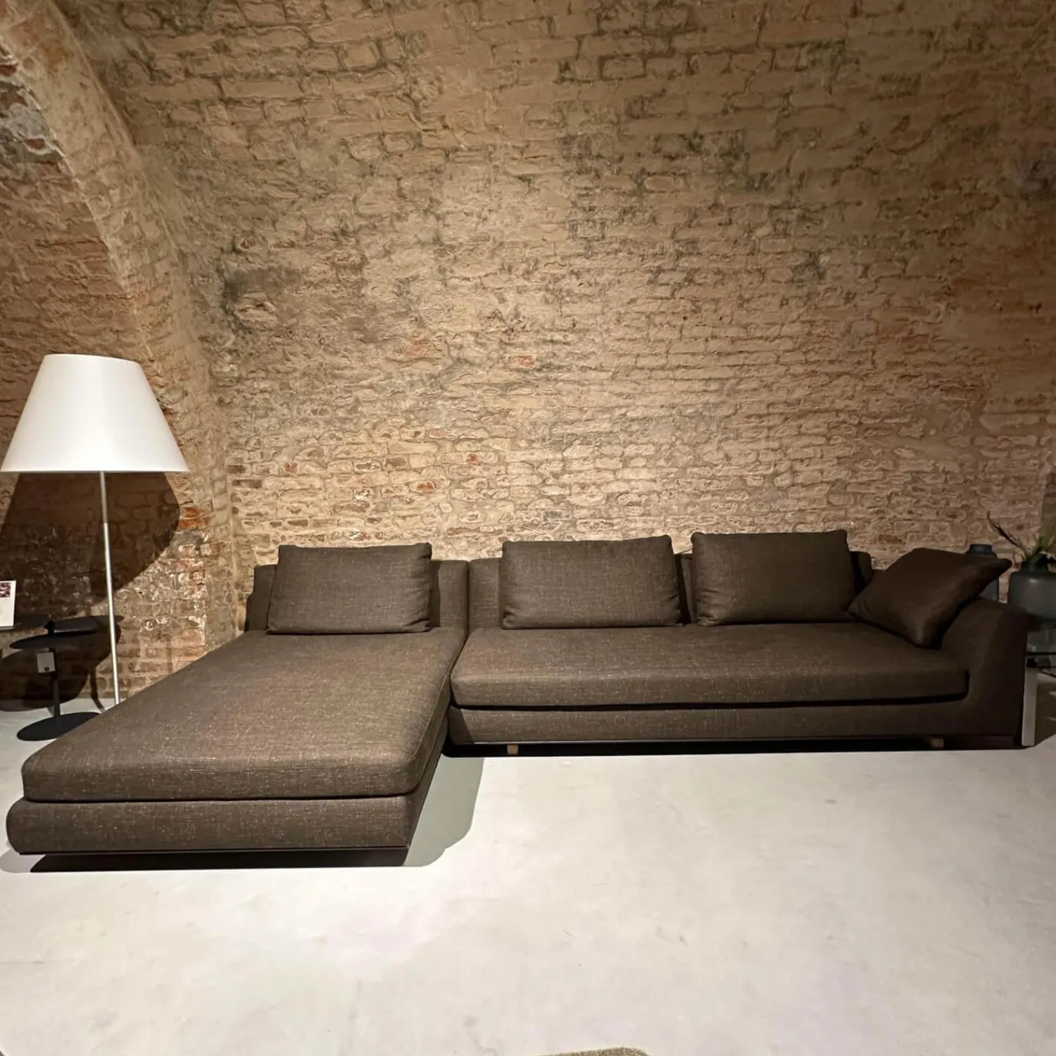 Walter Knoll Ecksofas|Ecksofa Tama Living Stoff B&B Spora 2038350 Braun Super Kufen Massivholz Eiche Weiß Alurahmen Bronze