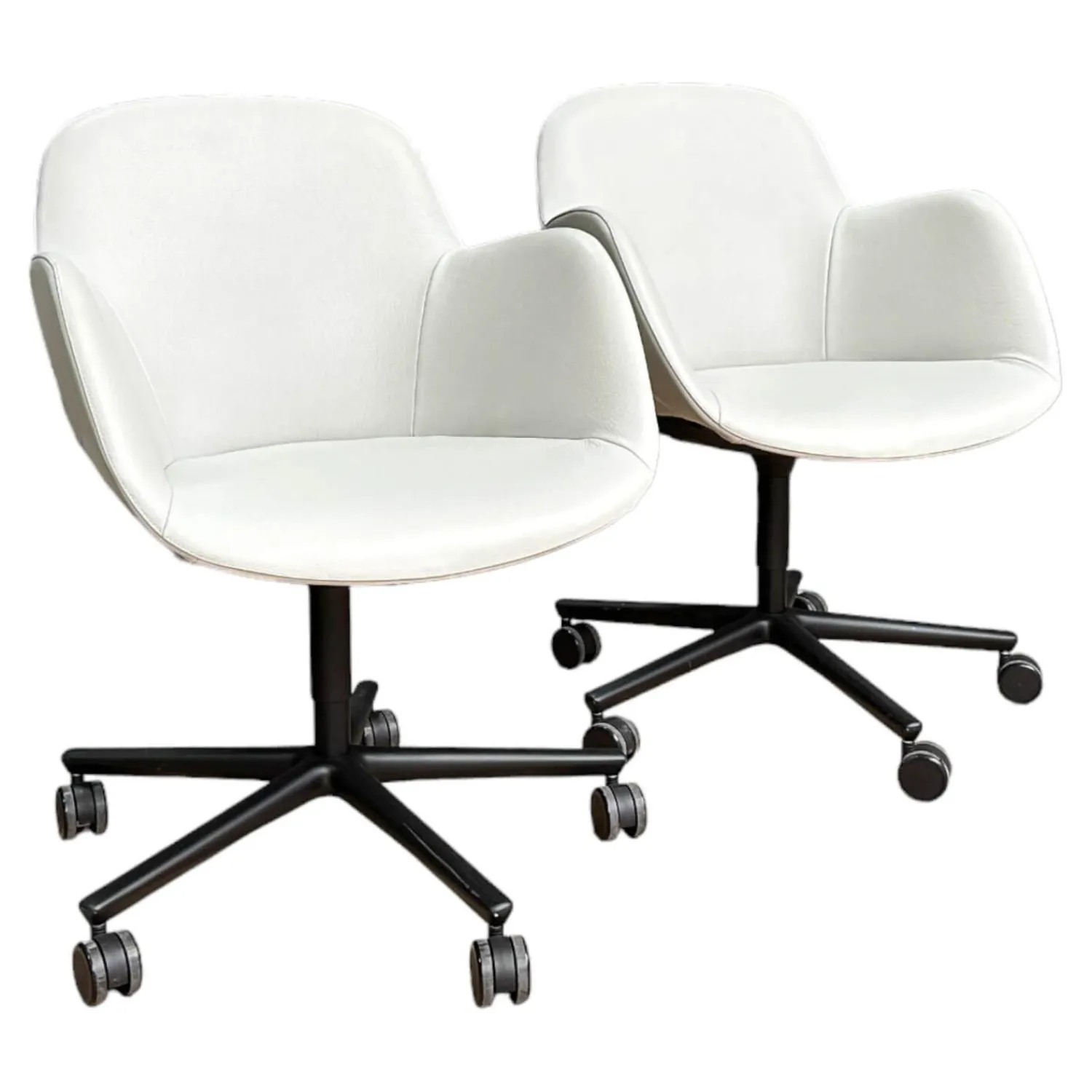 Walter Knoll Stuhlsets|2er Set Armlehnstuhl Sheru Drehbar Bezug Leder Rodeo-Soft 1416 Quartz Grau 5-Fuß-Kreuz Matt Pulverbeschichtet Schwarz
