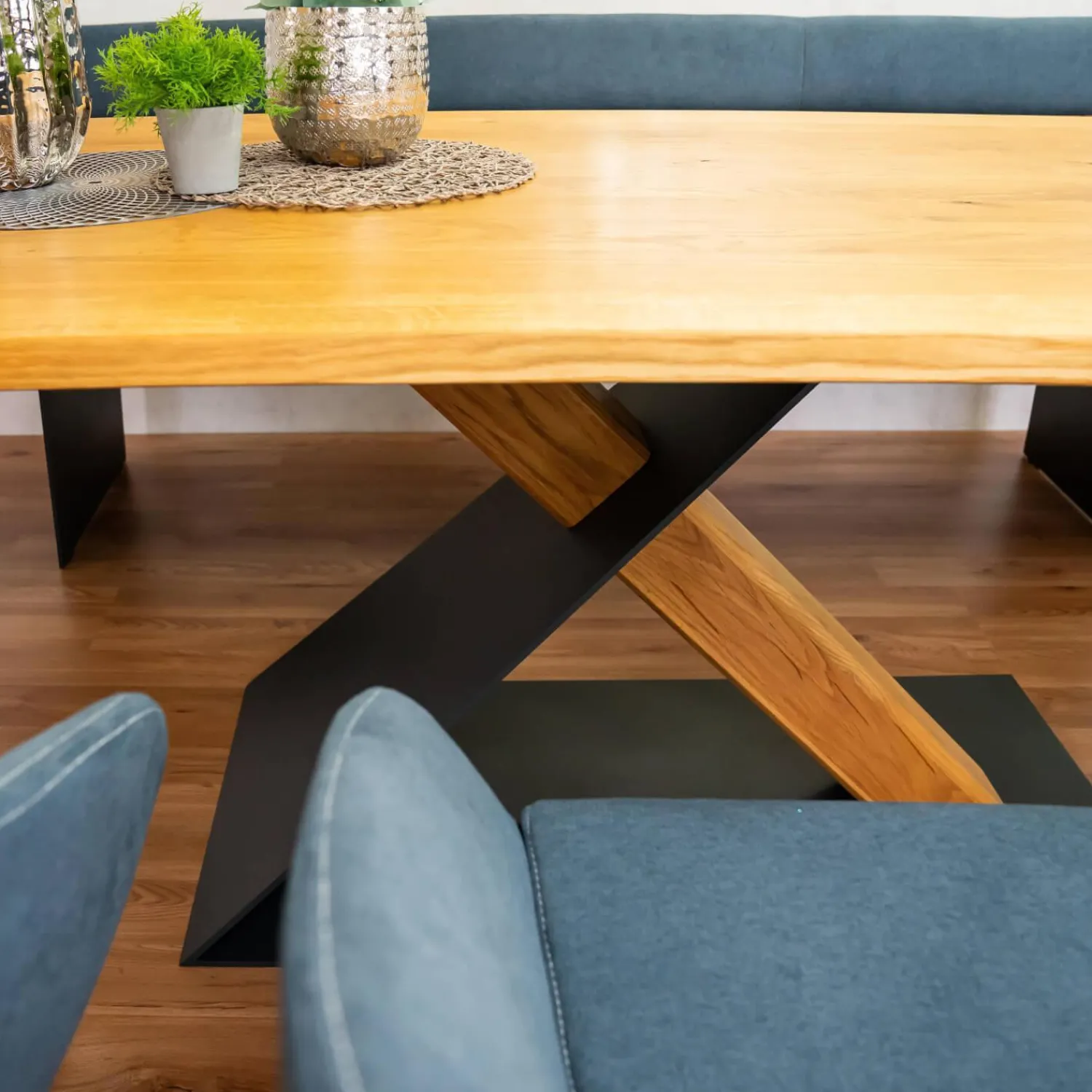 Lieferumfang: 1 Tisch, 1 Bank, 1 Sitzkissen, 3 Stühle, Ohne Deko