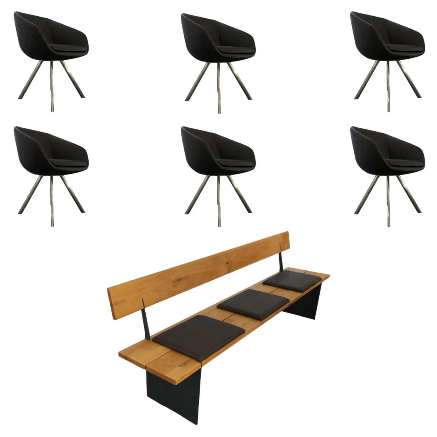 Lieferumfang: 1 Bank, 6 Stühle