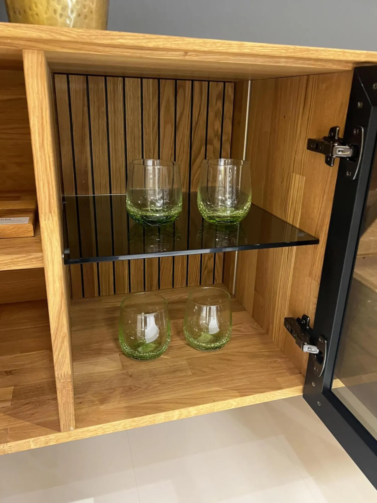 WK Wohnen Kommoden & Sideboards|Sideboard Baristo WK 490 Hängend Asteiche Natur Rahmen Metall Schwarz Mit Beleuchtung