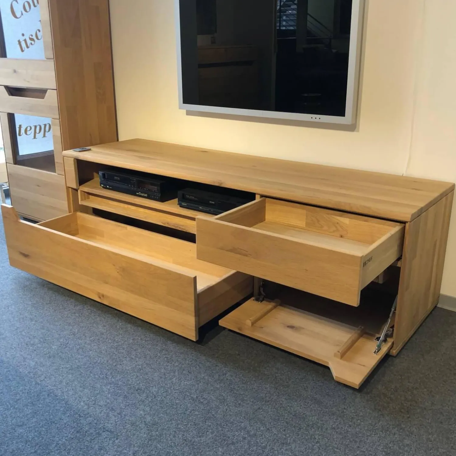 Genauer Zustand: Das Möbel hat als Ausstellungsstück in einem hochwertigen Einrichtungshaus eine gewisse Zeit verbracht. Seien Sie unbesorgt: Unser Expertenteam prüft jeden Artikel vor Versand noch einmal auf Zustand und Funktion. Sollten wir etwas finden, geben wir Ihnen Bescheid.