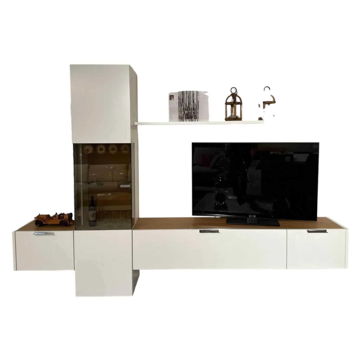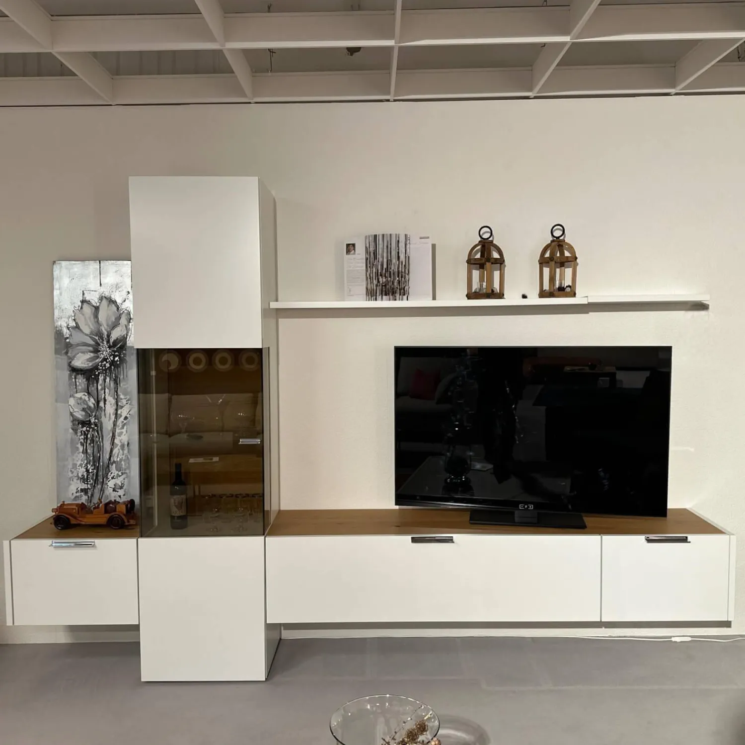 Höhe: Gesamt: 213 Lowboard: 36.6 Vitrine: 213 Wandsteckbord: 2.9 cm