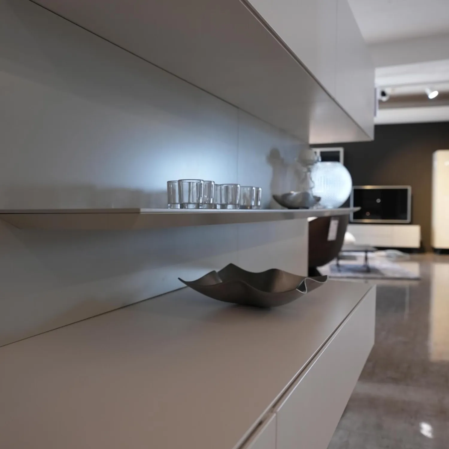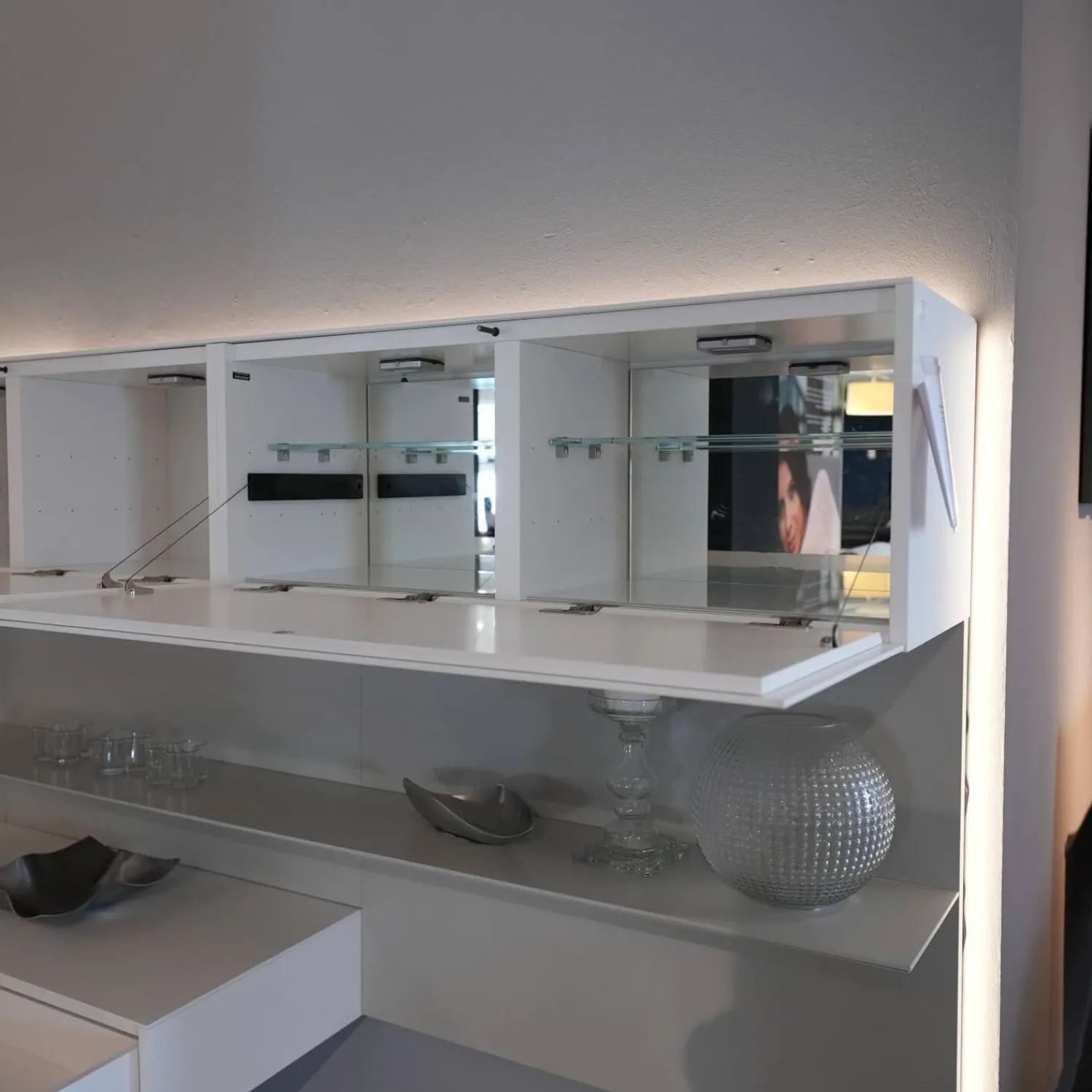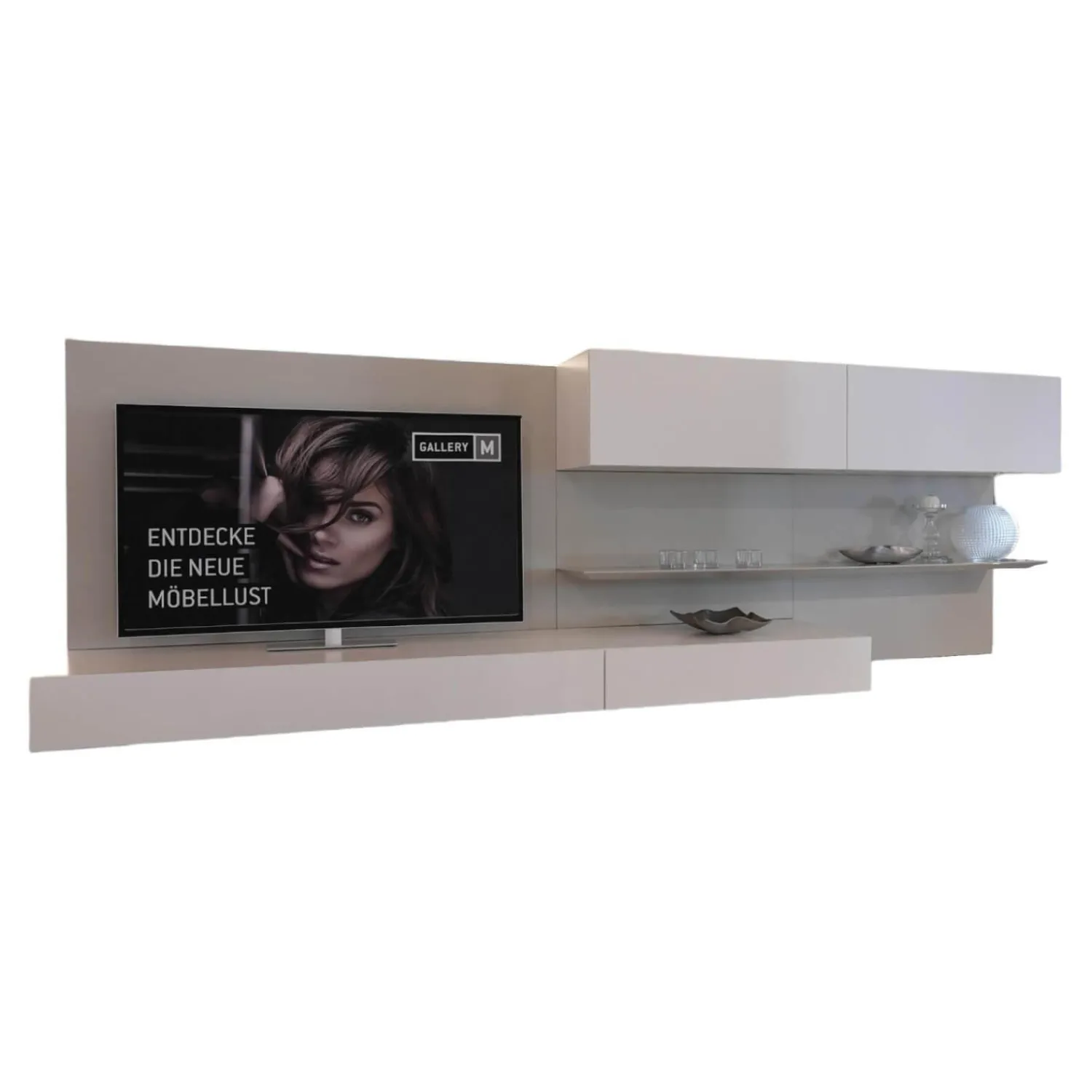 Lieferumfang: 1 Wohnwand mit Beleuchtung, 1 Rückwandspiegel, Ohne Deko
