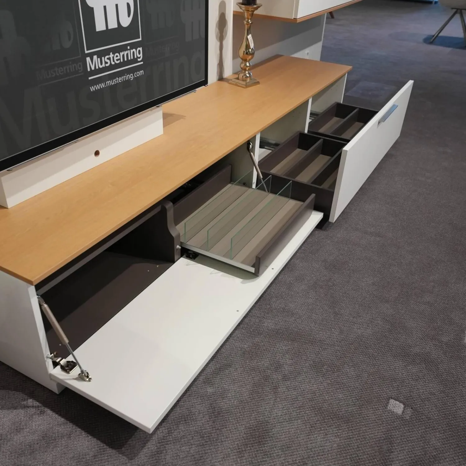 Genauer Zustand: Das Möbel hat als Ausstellungsstück in einem hochwertigen Einrichtungshaus eine gewisse Zeit verbracht. Seien Sie unbesorgt: Unser Expertenteam prüft jeden Artikel vor Versand noch einmal auf Zustand und Funktion. Sollten wir etwas finden, geben wir Ihnen Bescheid.