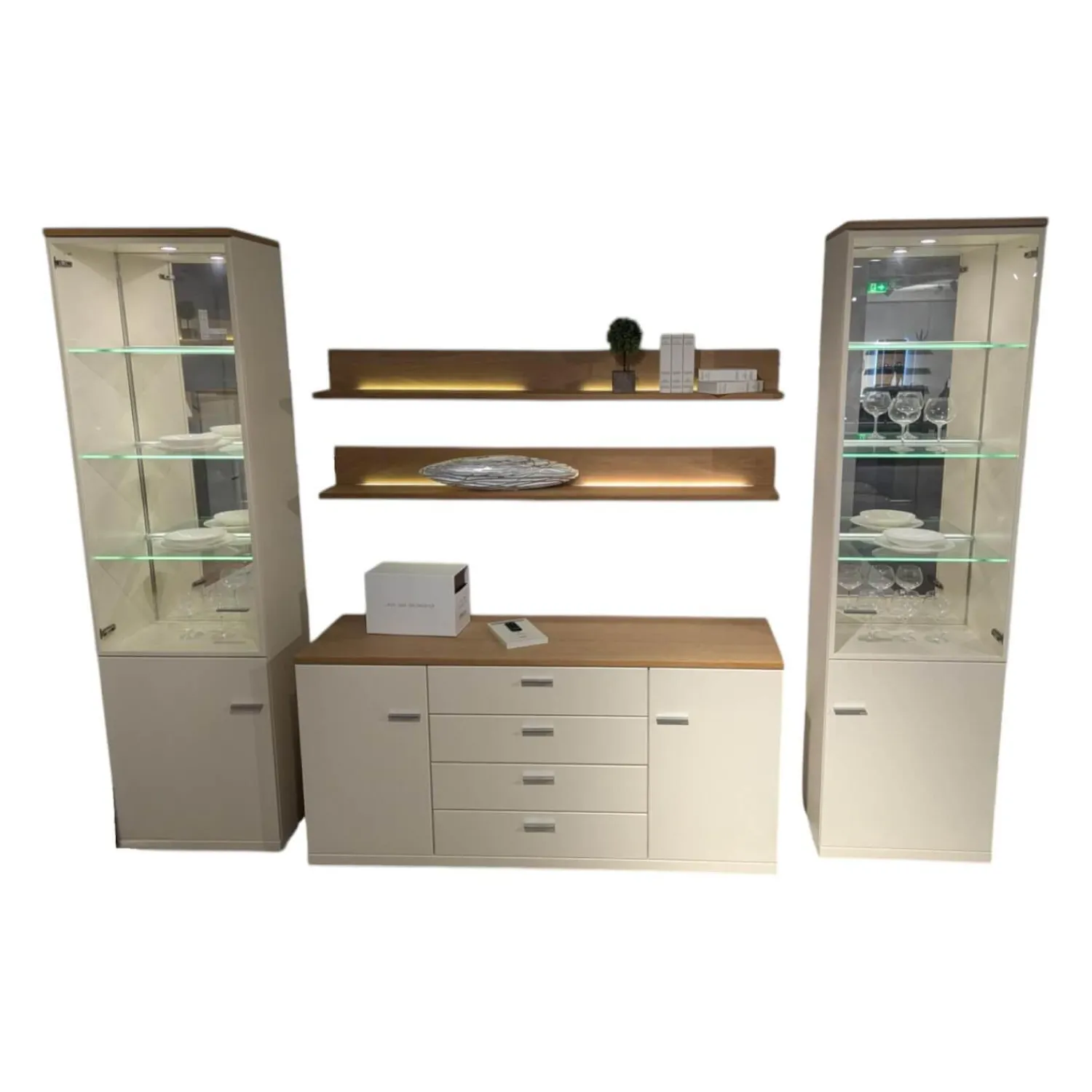 Höhe: Vitrine: 218 , Highboard: 77,5 , Wandboard: 17 cm