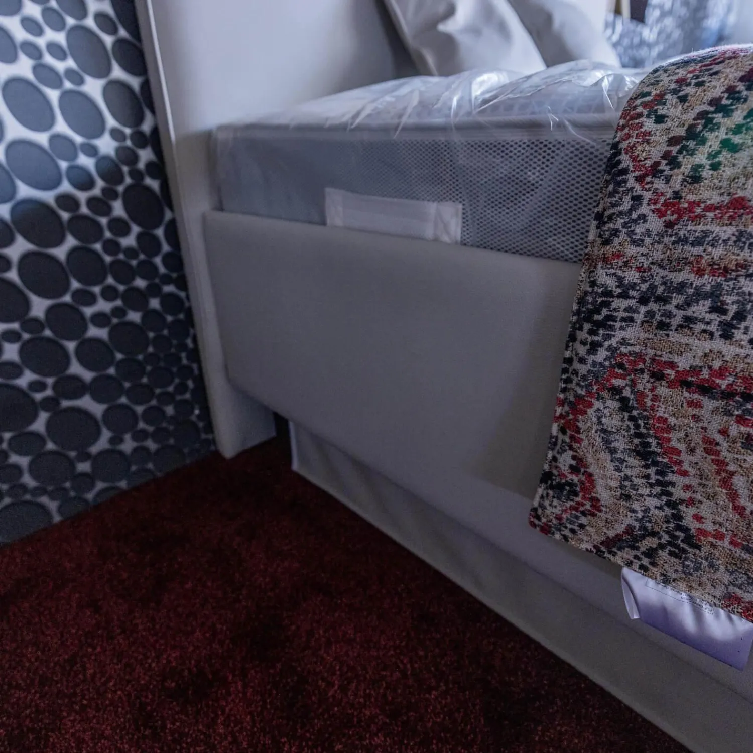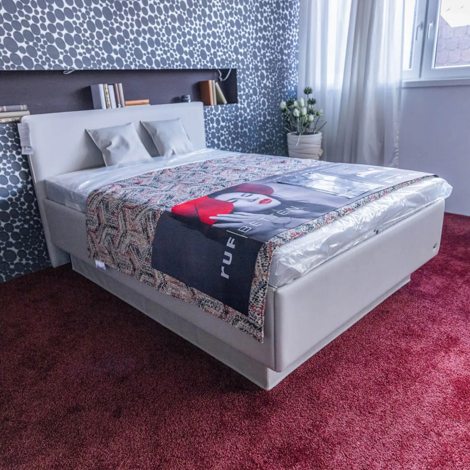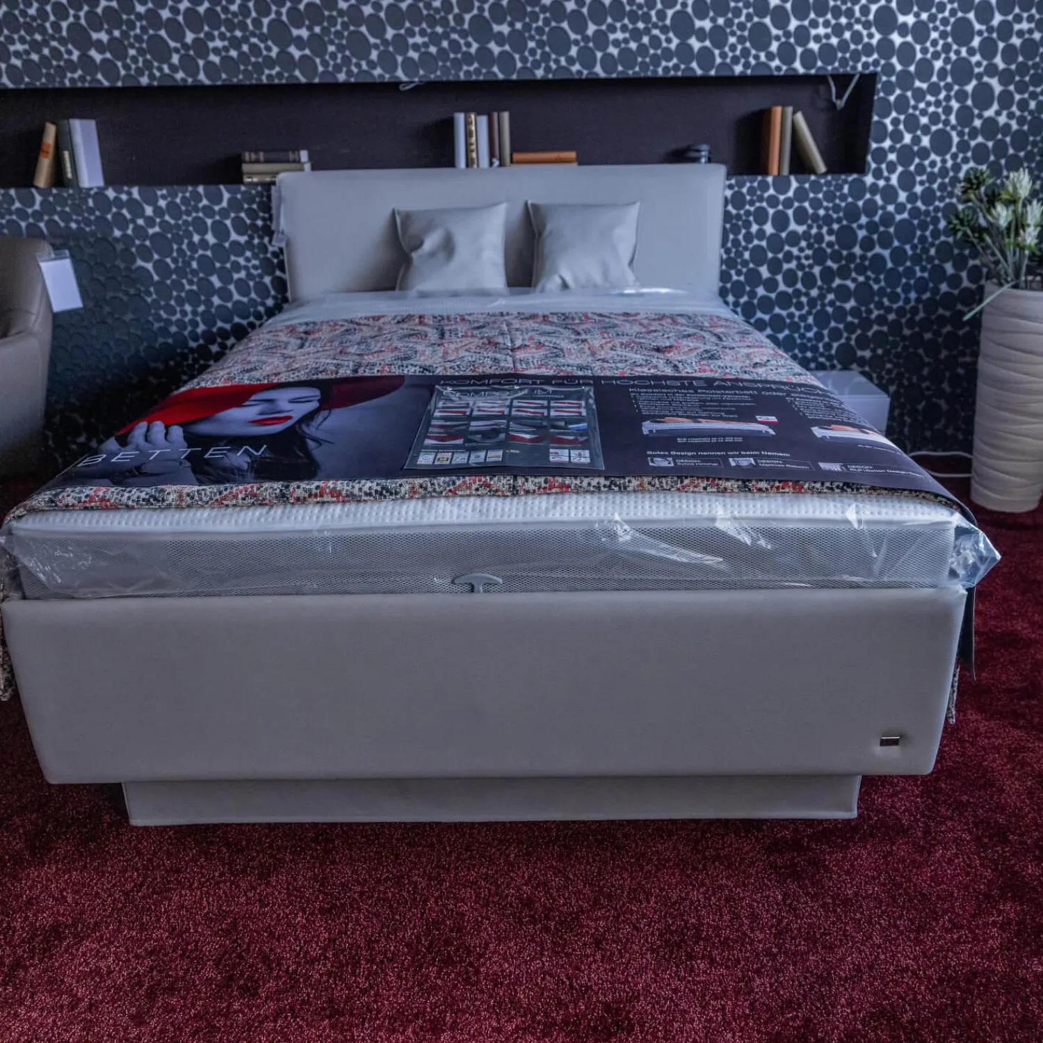 Lieferumfang: 1 Bett, 1 Unterbau, 1 Matratze, 1 Tagesdecke, 3 Kissen