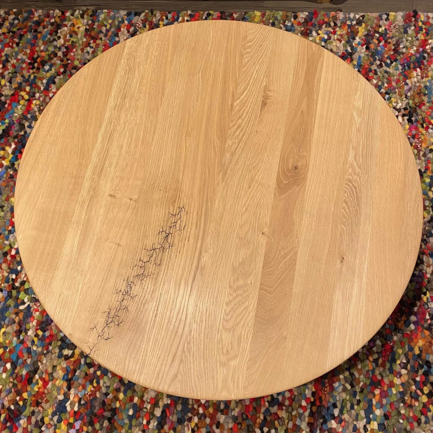 Farbbezeichnung des Herstellers: Rustikale Asteiche Bianco, Tischplattensignatur