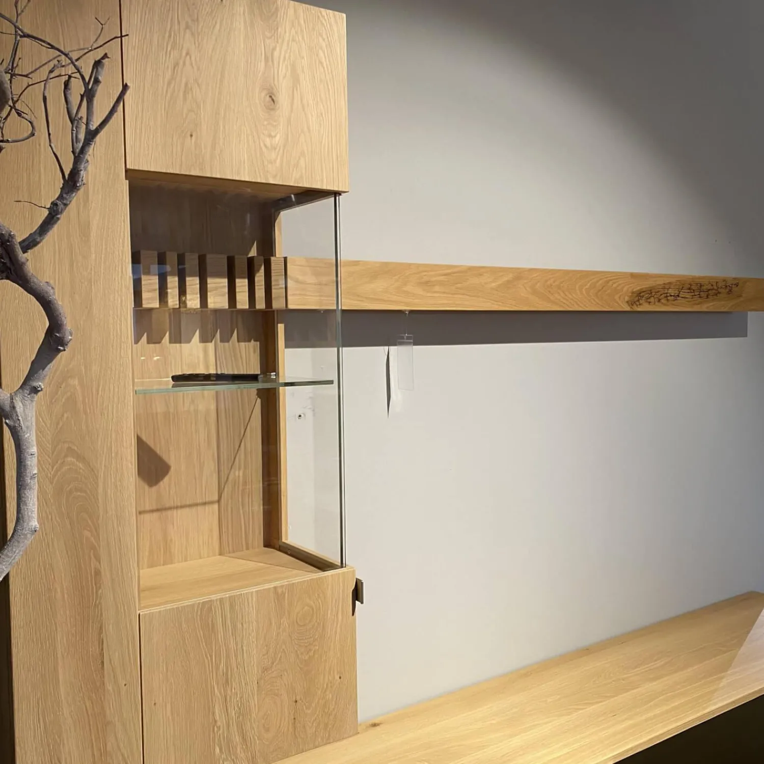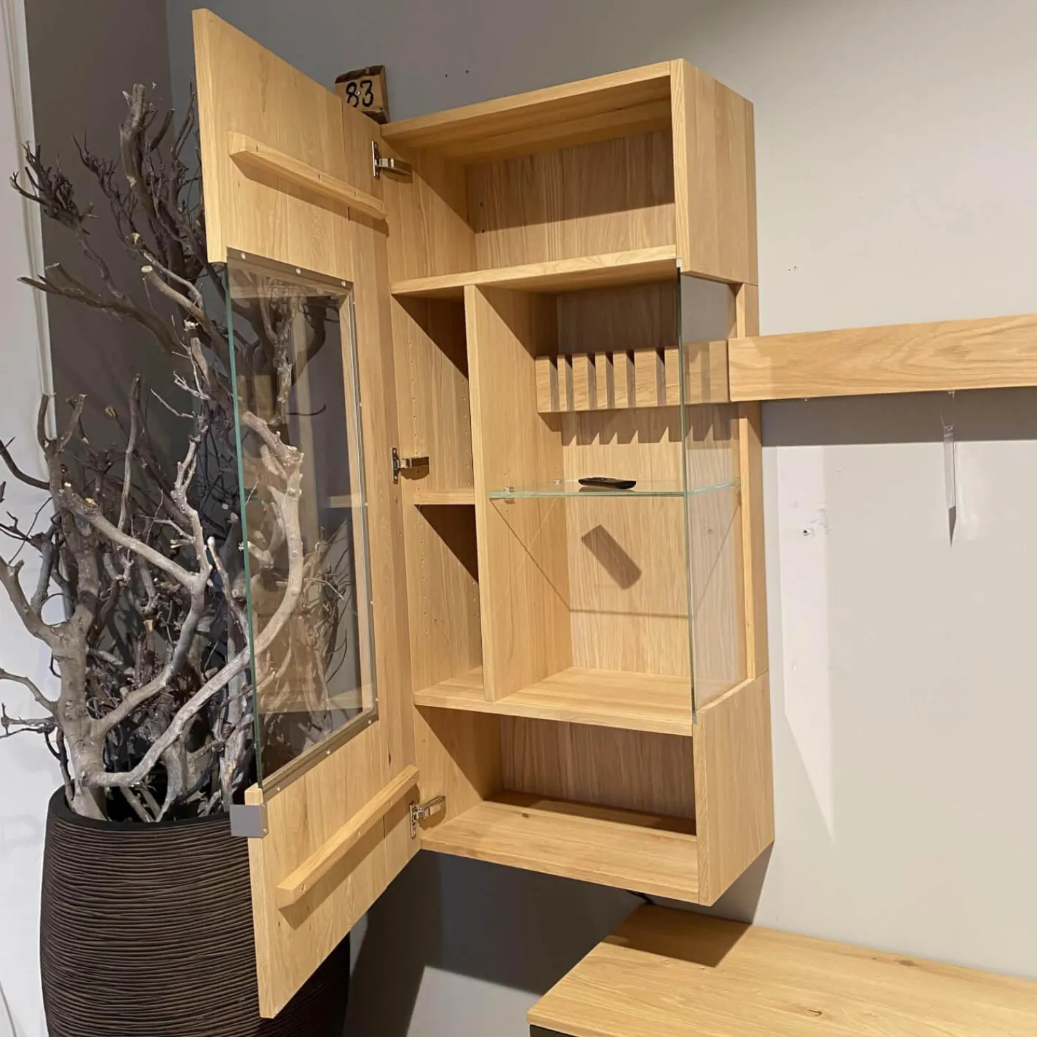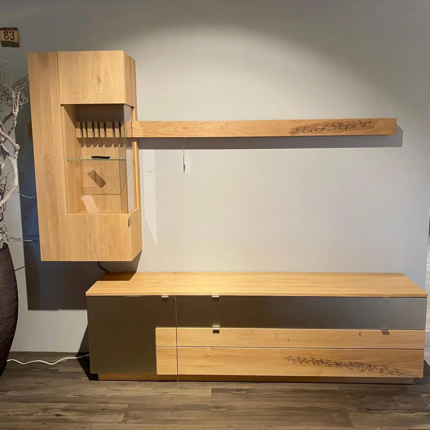 Breite: Gesamt: 257, Lowboard: 202, Vitrine: 55, Wandboard: 164,5 cm