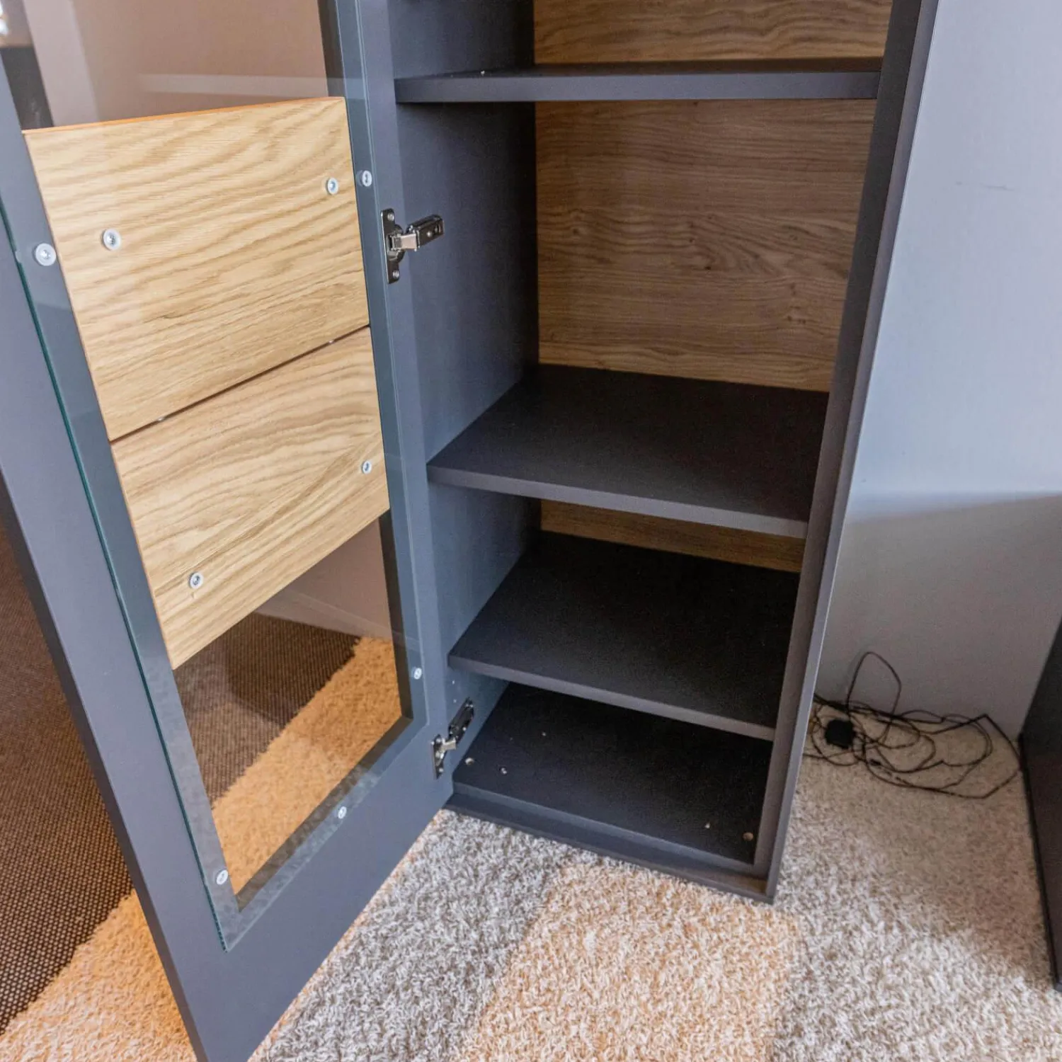 Tiefe: Sideboard: 43 , Hängevitrine: 33 , Vitrine: 42,5 cm
